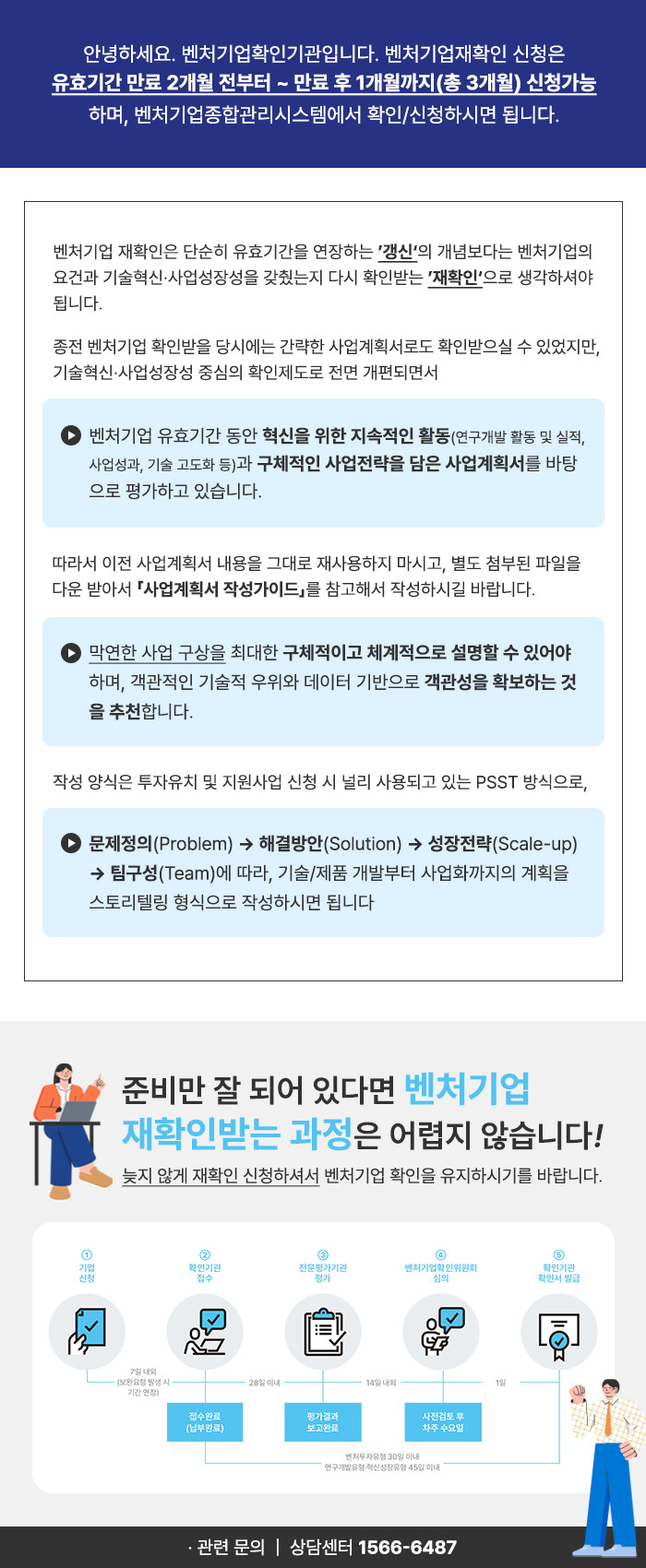 벤처기업 신규신청이 아닌, 재확인을 받고자하는 기업에 대한 안내를 드립니다.